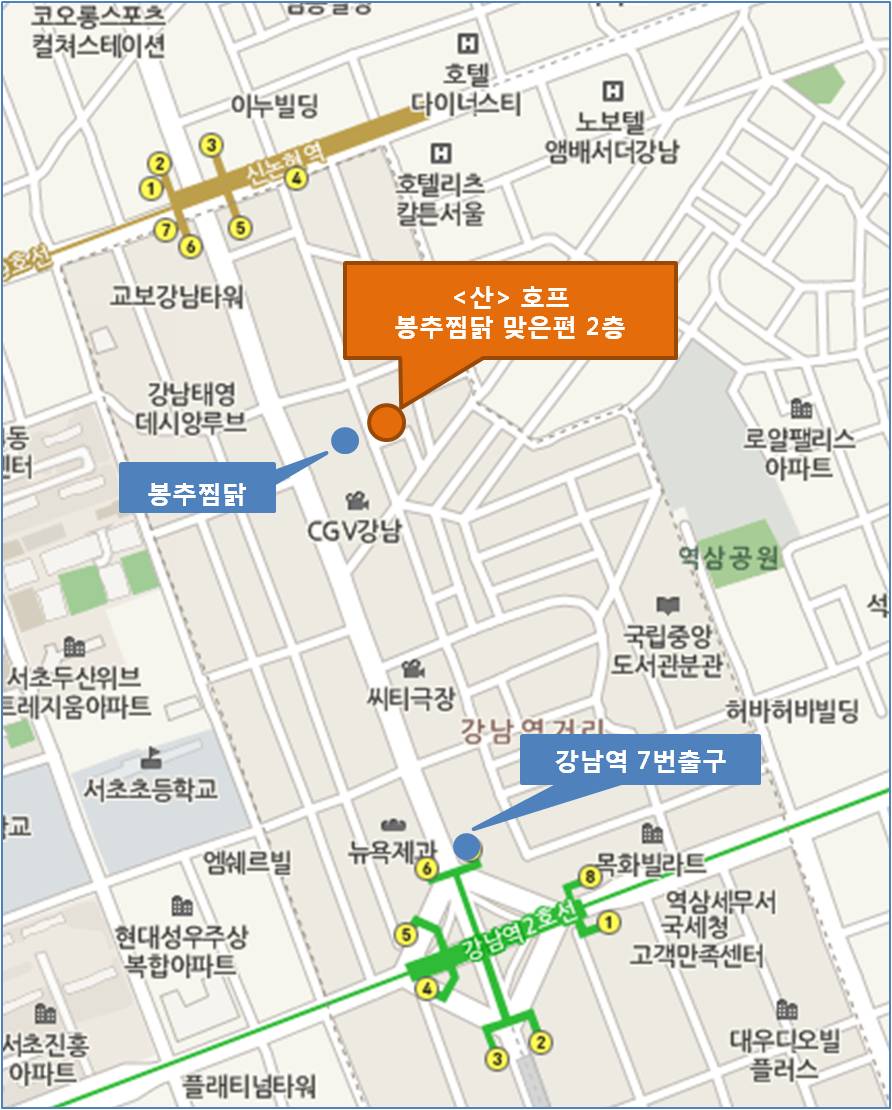 CGV 강남 뒤편 길 봉추찜닭 맞은편 건물 2층