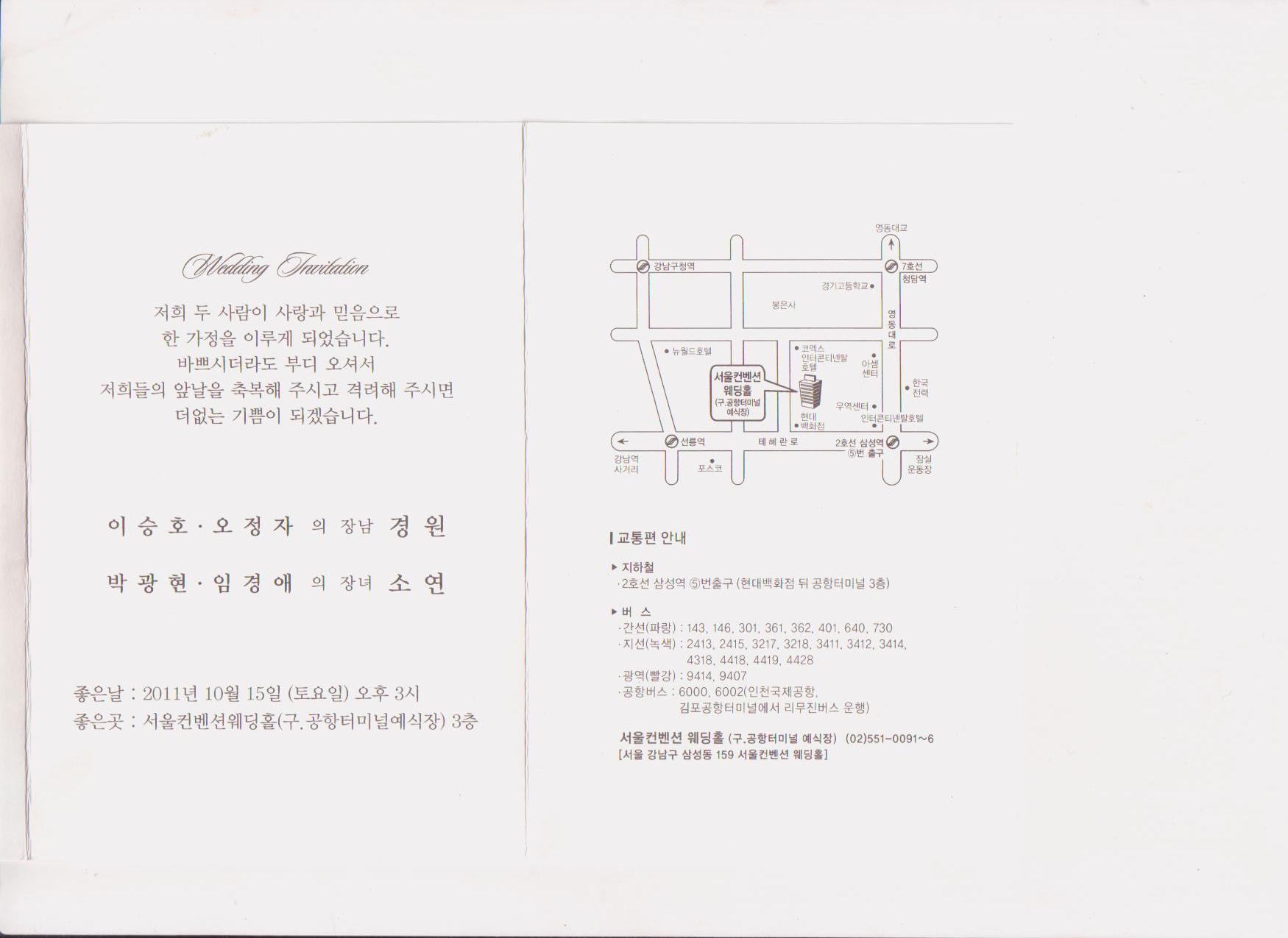 - 결혼식 시간: 2011.10.15(토) 오후 3:00