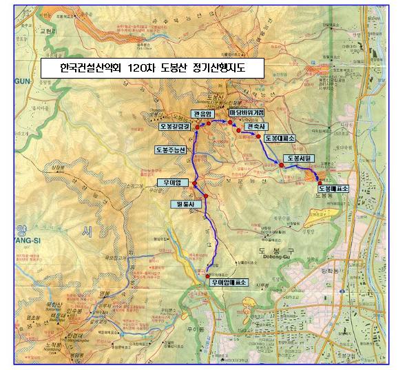 우이암매표소-원통사-우이암-도봉주능선-오봉갈림길-관음암-마당바위기점-천축사-도봉산대피소-도봉서원-도봉매표소