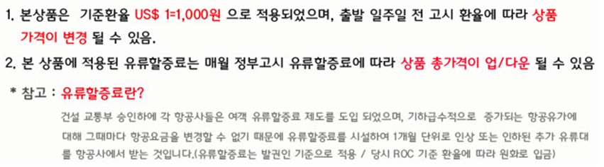 ![]() ◈ 참고사항안내 [유의사항] ① 예약시 여권상에 기재된 정확한 영문이름과 주민번호를 알려주셔야 합니다. ② 일정상의 표기된 일정과 호텔은 부득이한 경우 현지 사정에 따라 변동 될 수 있습니다. ③ 단체여행을 목적으로 한 패키지 상품은 일정 내 개별 활동은 불가능하며 개별활동을 원할 시에는 개별여행 상품으로 예약 문의 부탁드립니다. ④ 각 나라별 입국시 담배 및 주류는 반입 허용 범위를 확인하시기 바랍니다. ⑤ 각 나라에 따라 호텔에 세면도구(치약,칫솔 등)를 구비하지 않는 경우도 있습니다. ⑥ 호텔은 2인 1실 기준입니다. [공항이용시 주의사항] 2007년 3월을 기하여 국제선을 이용하는 승객을 대상으로 액체류에 대한 검색이 강화되었습니다.용기당 100ml를 초과하는 화장품, 치약류, 헤어젤 등 기타 액체류 물품은 기내반입이 제한되며 총 1리터(1인당)가 넘는 경우 공항압수 등의 조치가 있을 수 있습니다. (단, 탁송수하물은 제한사항 없음) 또한 이로 인하여 출국수속시간이 지연될 수 있사오니 미팅시간을 엄수하여 주시기 바랍니다. 예약(예약금 입금)후 여행을 취소할 경우 국외여행표준약관 제 15조의 소비자피해보상규정에 따라 아래의 비율로 취소료를 부과함을 양지하여 주시기 바랍니다. [예약금 규정](정기노선) - 예약후 3일이내(~3일)에 1인당여행경비의100,000원 예약금을 입금 하셔야 합니다. 예약금을 입금하지 않으실 경우 예약이 확정되지 않습니다.여행자의 취소요청시시 하기의 경우에 해당시 여행약관에 의거 취소료가 부과됩니다. - 여행출발 30일전까지 요청시 : 여행계약금 환급 - 여행출발 29일~20일전까지 요청시 : 여행경비의 10% 취소료 부과 - 여행출발 19일~10일전까지 요청시 : 여행경비의 15% 취소료 부과 - 여행출발 9~8일전까지 요청시 : 여행경비의 20% 취소료 부과 - 여행출발 7~1일전까지 요청시 : 여행경비의 30% 취소료 부과 - 여행출발 당일 통보 : 여행경비의 50% 취소료 부과 * 근무일(공휴일 및 토,일요일 제외) 및 근무시간(18시30분까지) 내에 취소요청에 한함. [최저출발인원 미 충족시 계약해제] 여행약관 제9조(최저행사인원 미 충족시 계약해제 또는 타여행사 와 행사 진행)에 의거 ① 당사는 최저행사인원이 충족되지 아니하여 여행계약을 해제하는 경우 여행출발 7일전까지 여행자에게 통지하여야 한다. ② 당사는 여행참가자 수 미달로 전항의 기일내 통지를 하지 아니하고 계약을 해제하는 경우 이미 지급 받은 계약금 환급 외에 다음 각 목의 1의 금액을 여행자에게 배상하여야 한다. - 여행개시 7일전까지 통보시 : 계약금 환급 - 여행개시 6~1 일전까지 통보시 : 여행요금의 20% 배상 - 여행당일 통보시 : 여행요금의 50% 배상 ![]() ▶산과 자연 여행사 홈페이지에 들어 가셔서 확인 바랍니다. [여권비자정보] 1. 여권 유효기간은 출발일 기준으로 6개월 이상 남아 있어야 합니다. 2. 단수여권의 경우 미사용 여권이어야 합니다. 3. 한국인은 단체 비자 또는 개인 VISA을 받아야 입국이 가능합니다. 4. 외국인(시민권자)은 VISA 필요 유무를 해당국가 대사관에 사전확인 바랍니다 [중국단체비자 유의사항] 1. 중국은 출입국시 비자가 필요한 국가이며, [개인비자/단체비자] 중 택1 가능합니다. (외국/이중국적자께서는 본인의 국적지 대사관으로 문의하셔야 합니다) 2. 단체비자는 5인이상 신청이 가능하며 타인과 함께 A4용지에 낱장의 형태로 중국정부로부터 발급되며 개인정보(영문명,성별,생년월일,여권번호,국적)가 출입국관리국으로 공유되어 제출되며, 단체비자 사본이 출입국시 사용되는점 인지하여 주시기 바랍니다. 3. 단체비자의 경우 여권사본이 중국대사관에 제출되어야 발급가능하며, 출국당일 제출하신 여권사본과 동일한 여권을 지참하여야 합니다. 4. [필독] 단체비자 보관은 단체비자 1번 고객님께서 보관(훼손이 발생하면 안됩니다) 하셔야 하며, 입국시 단체비자 1번 고객님이 원본 2장을 중국 입국 심사시 제출하고, 단체비자 마지막 고객님께서 원본 1부을 받아서, 단체비자 1번 고객님에게 드려 보관, 중국에서 출국시 단체비자 원본 1부를 출국심사시 제출하여야 합니다, 단체 비자를 분실시, 단체비자 명단에 있는 모든분이 중국에서 출국할 수 없습니다. 중국 현지에서 체류하면서 단체비자 재발급후 중국에서 출국을 할 수 있습니다. [유류할증 및 환률] ![]() ![]() |