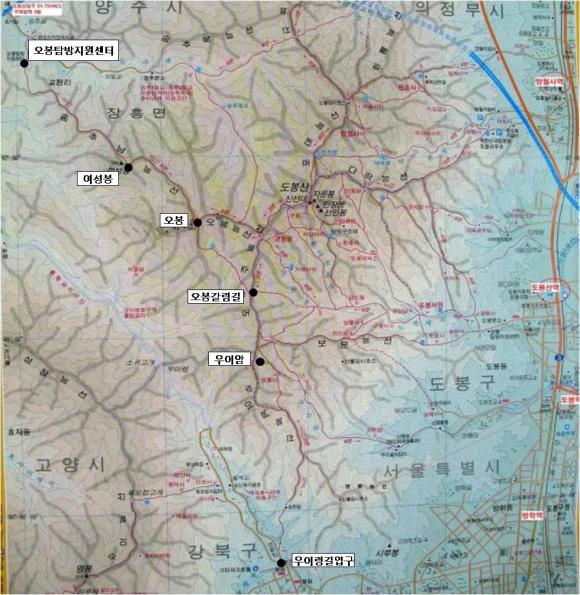 우이령길입구 → 우이암 → 오봉 → 여성봉 → 오봉탐방지원센터