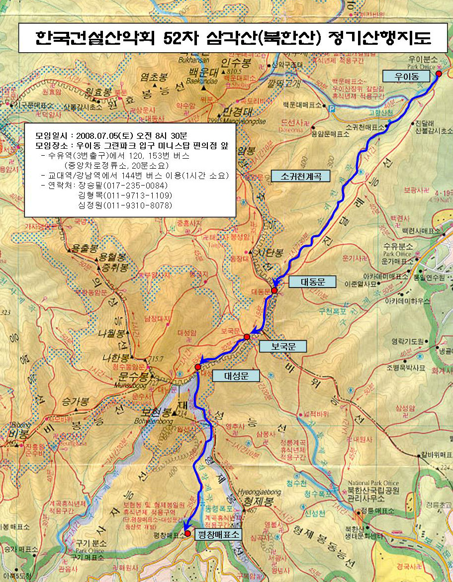 제52차 삼각산(북한산) 정기산행 안내 (08-07-05)