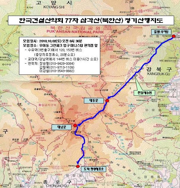 제77차 삼각산(북한산) 정기산행 안내(10-10-02)