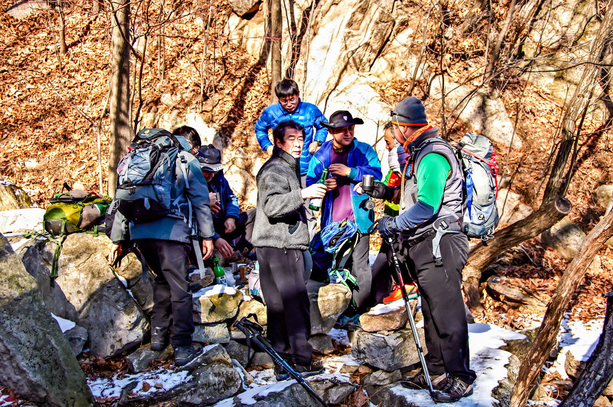 #하산하는 도중에 마지막으로 가져온 막걸리와 안주로