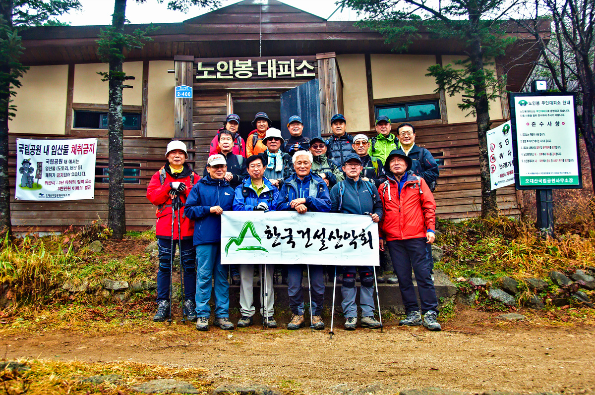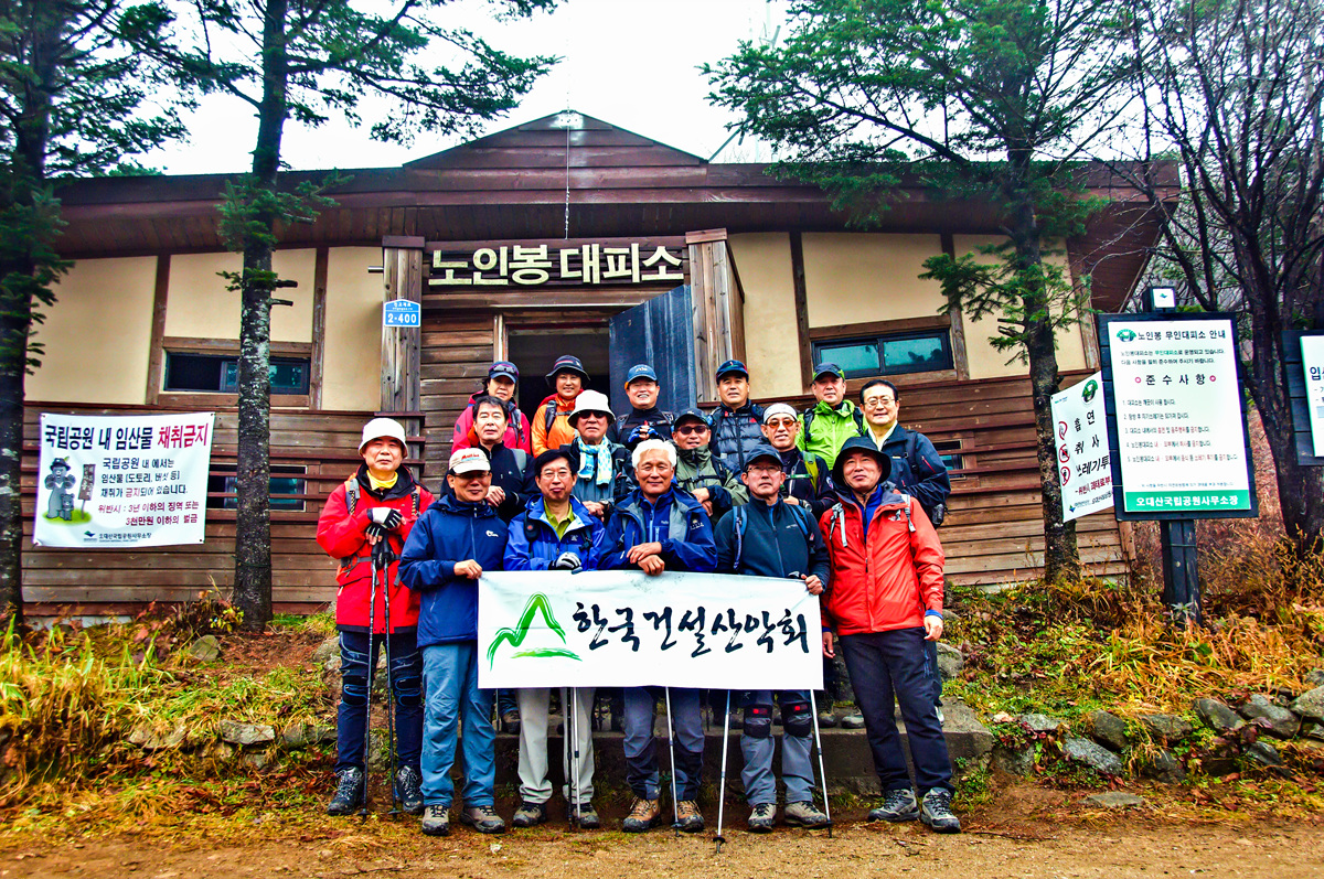 #노인봉대피소에서 단체사진을찍고, 이제 무릉계곡으로 하산~