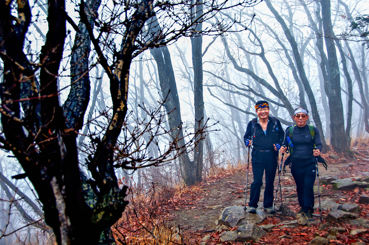 #진고개에서 노인봉 정상으로 가는 길목에서 회원님들의