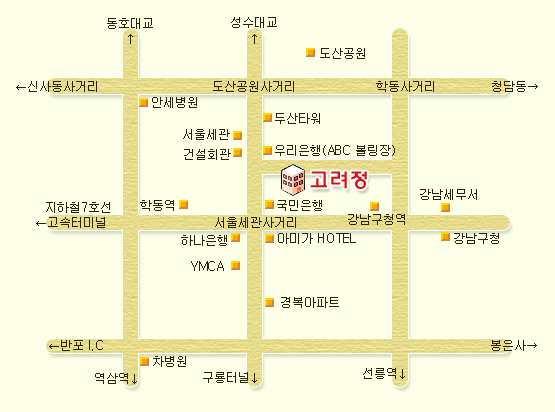 | 2006년도를 결산하는 송년 모임이 있을 예정입니다. 일시 : 12월 26일(화) 저녁 6시 30분 장소 : 고려정 (아래 약도 참조) 지하철 이용하실 때 - 7호선 학동역 10번 출구에서 3분거리 (건설회관 건너편 국민은행과 우리은행 사이) 버스를 이용하실 때 - 파랑(간선) 141, 401, 405, 640 초록(지선) 2225, 3414, 3422, 4412, 6411 이번 송년 모임에는 연말회의도 같이 있을 예정입니다. 2006년도 결산 발표와 2007년도 사업계획안을 결정할 예정입니다. 장소 예약시 인원 파악을 위해서 신청을 받으려고 합니다. 참석을 원하시는 회원님들은 12월 19일까지 신청해 주시기 바랍니다. 아래 연락처로 메일을 보내시거나 전화 연락 주시기 바랍니다. 회원 여러분의 많은 참석 바랍니다. ![]() ======================================== 서울대학교 지구환경시스템공학부 담당: 인성빈 - 전화: 02-880-8314 / 016-323-6117 - Fax: 02-875-2148 - E-mail: bini77@snu.ac.kr |