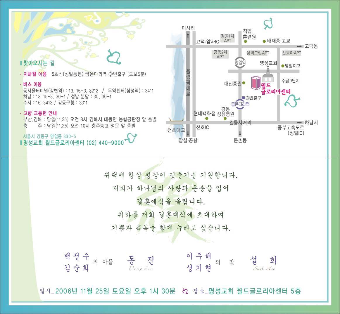 장소 : 명성교회 월드글로리아 센터 5층 (약도 참고)