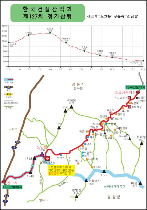 | 2014년도 제127차 11월 정기산행 안내 1. 일시: 2014년 11월 01일 토요일 07:00am 2. 모임장소: 압구정현대백화점주차장 3. 등산코스 진고개→노인봉대피소→노인봉→노인봉대피소→구룡폭포→소금강분소 약13 Km 4. 예상산행시간 : 6시간 (휴식시간 포함) 5. 주요 일정 07:00 압구정동 출발 08:00 영동고속도로 덕평휴게소 도착 (30분 휴식) 10:30 진고개 도착 및 산행시작 16:30 하산완료 및 식사 18:00 식당 출발 21:30 서울(압구정동) 도착 (위 일정은 예상이므로 당일 여건에 따라 단축되거나 지연될 수 있습니다.) 6. 뒷풀이 장소는 당일 결정하여 공지하겠습니다. 7. 문의 및 연락처 : 한영균(010-5234-7157) 8. 산행약도 ![]() |