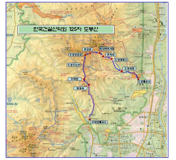 | [2014년 제125차 추석맞이 정기산행 안내] 1. 일시: 2014년 9월 6일 토요일 오전 08시 30분 2. 모임장소: 우이동 그린파크 들어가는 교량 앞 편의점(미니스탑) 3. 등산코스 우이암매표소-우이암-도봉주능선-오봉갈림길-관음암-마당바위기점-도봉산대피소-도봉서원-도봉매표소 4. 예상산행시간 : 4시간 (휴식시간 포함) 5. 뒷풀이 장소는 당일 결정하여 공지하겠습니다. 7. 문의 및 연락처 한영균(010-5234-7157) 8. 산행약도 ![]() |