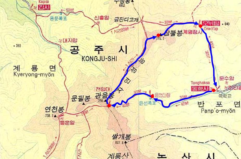 | 1. 산행정보 ○ 산행지 : 계룡산 (845m) ○ 일 시 : 2008년 10월 29일(토목학회 일정 첫날, 당일코스) ○ 모임 시간 및 장소 : - 서울에서 당일 아침에 출발하실 참가자 분들: 시간: 오전 7시 장소: 양재동 서초구민회관 버스주차장(지하철 3호선 양재역 7번출구) - 대전에서 직접 참가하실 분들: 시간: 오전 9시 30분 장소: 계룡산 동학사 주차장 ※ 대전 시내에서 102번 좌석버스가 고속버스터미널, 대전역을 거쳐 동학사 방면으로 운행중입니다. 자세한 내용은 홈페이지, http://traffic.metro.daejeon.kr 을 참조하시기 바랍니다. ○ 세부일정 : 07:00 서울 양재동 버스 출발 09:30 계룡산 동학사 주차장 도착 09:40~15:00 산행 - 코스:동학사-은선폭포-관음봉-자연성릉-남매봉-동학사 - 점심식사: 산행 중 도시락 15:00~16:00 사우나 장소로 이동 및 사우나 17:00 학회장 도착 19:00 저녁식사 겸 산행 뒤풀이(장소는 당일 안내) 2. 개인별 산행준비물 - 등산화, 배낭, 장갑, 스틱, 방풍자켓 등 기본 산행 복장. - 식수(1병은 제공), 간식 및 비상식: 초콜렛, 과자, 떡 등. - 우천시 우의, 배낭 커버. 3. 특기사항 - 도시락 및 식수 1병 제공 4. 참가비 : 20,000원 5. 사전참가신청안내 10월 20일까지 이메일(sheyej1@snu.ac.kr) 및 전화(011-9310-8078)접수 참가비는 당일 납부 ※ 이메일 접수를 하신 분들은 확인 회신을 드리겠습니다. 회신을 받지 못한 분들께서는 전화확인 부탁드립니다. 6. 문의 및 연락처. 한국건설산악회 심정원(02-880-8314, 011-9310-8078, sheyej1@snu.ac.kr) 7. 등산코스 지도 |