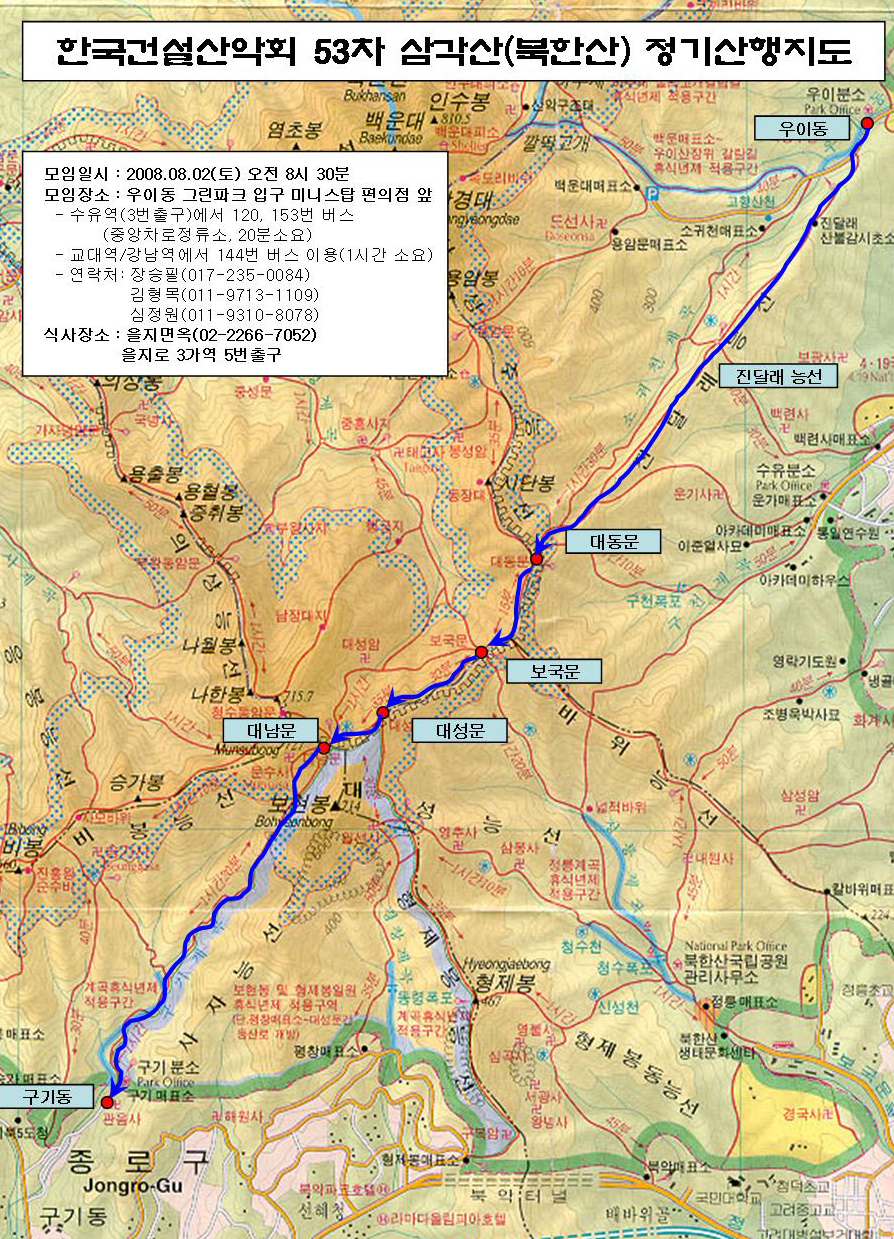 제53차 삼각산(북한산) 정기산행 안내 (08-08-02)