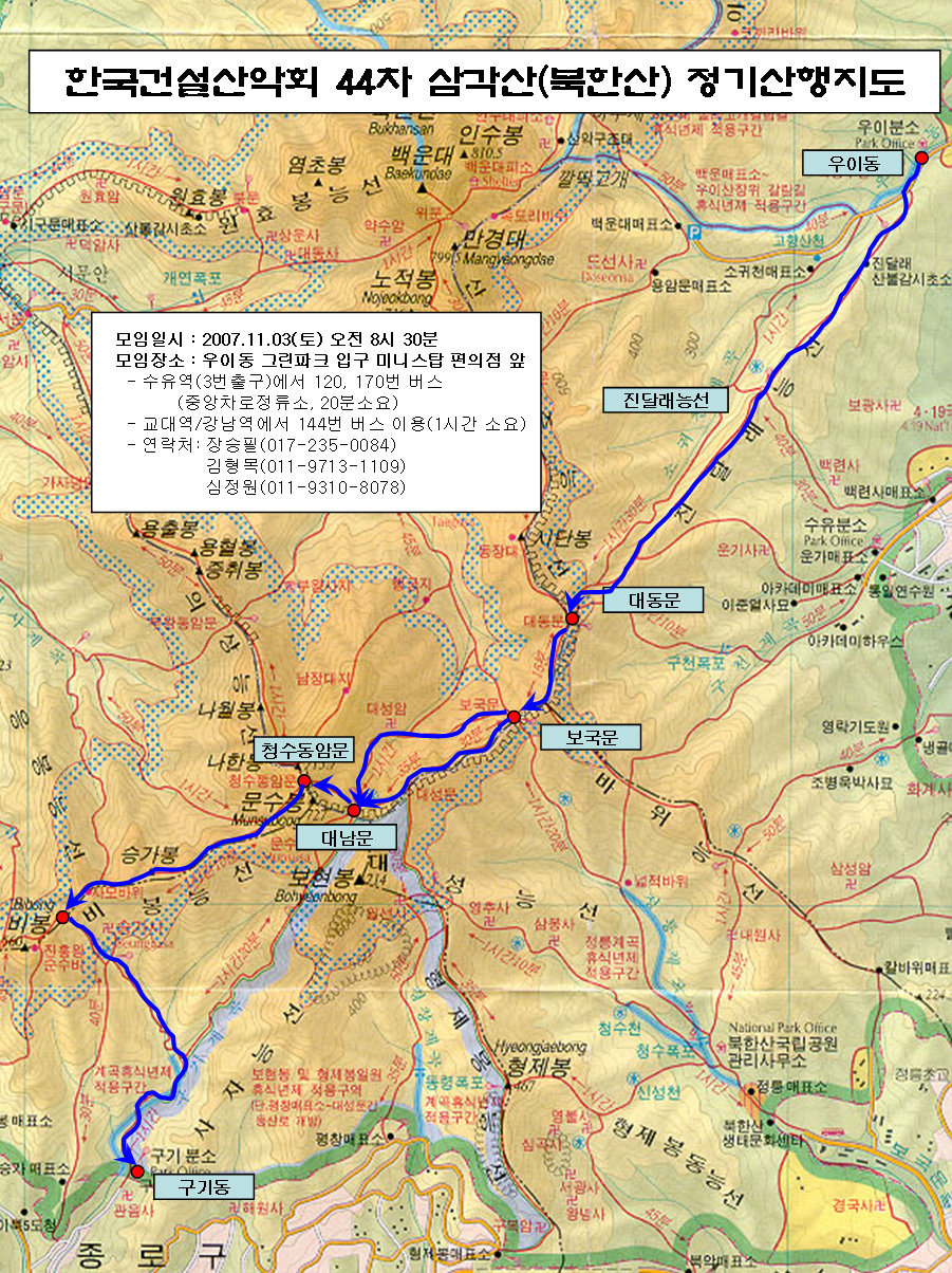 제 44차 삼각산(북한산) 정기산행 안내 (07-11-03)