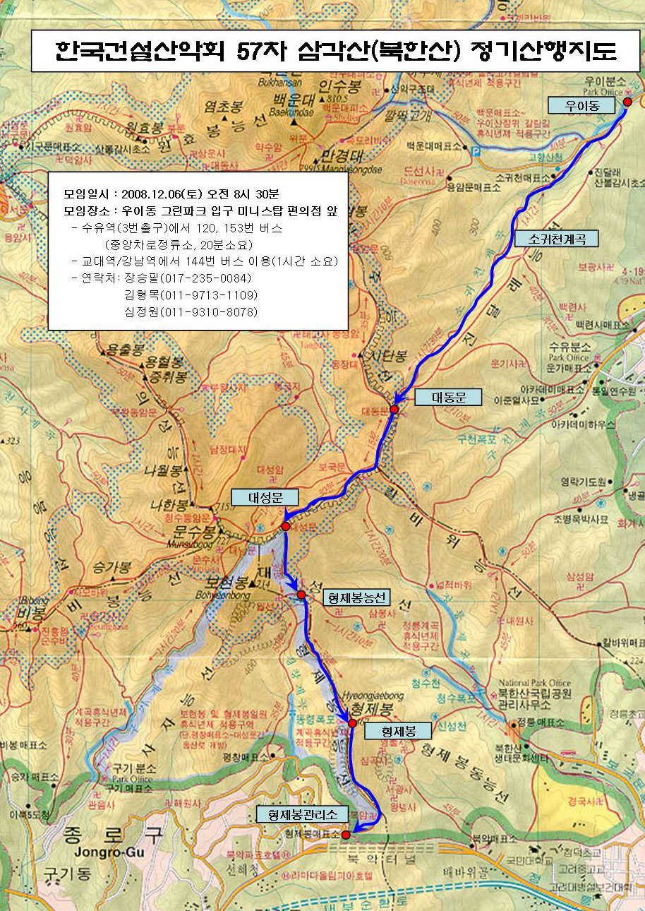 제57차 삼각산(북한산) 정기산행 안내 (08-12-06)