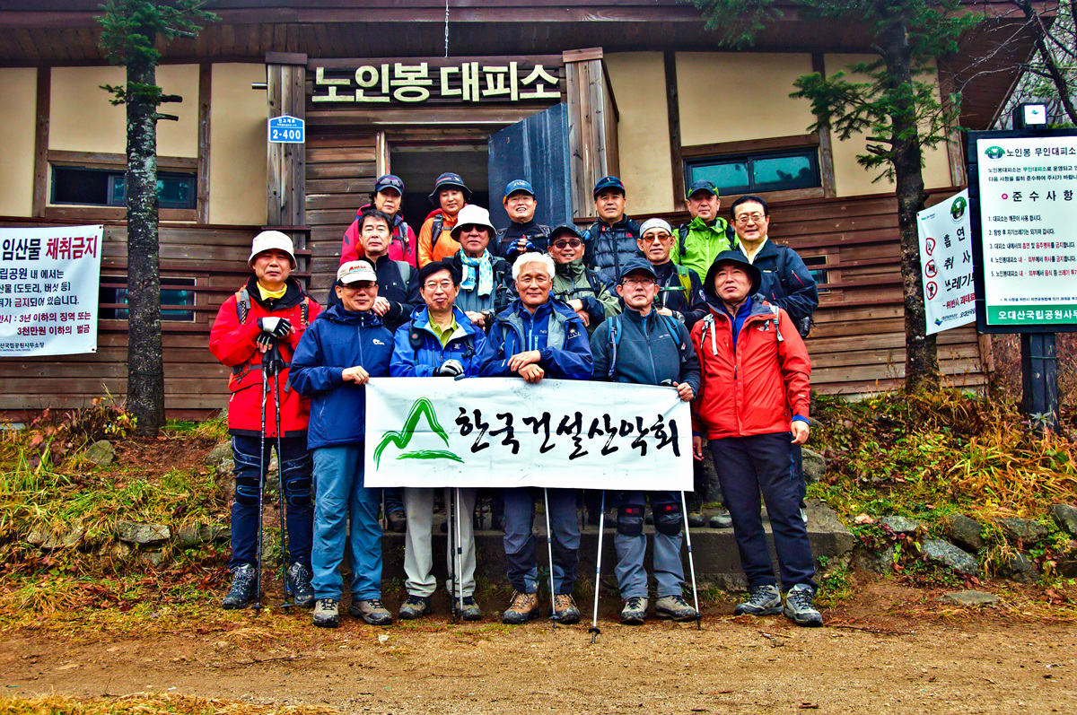 #노인봉대피소에서 단체사진을찍고, 이제 무릉계곡으로 하산~