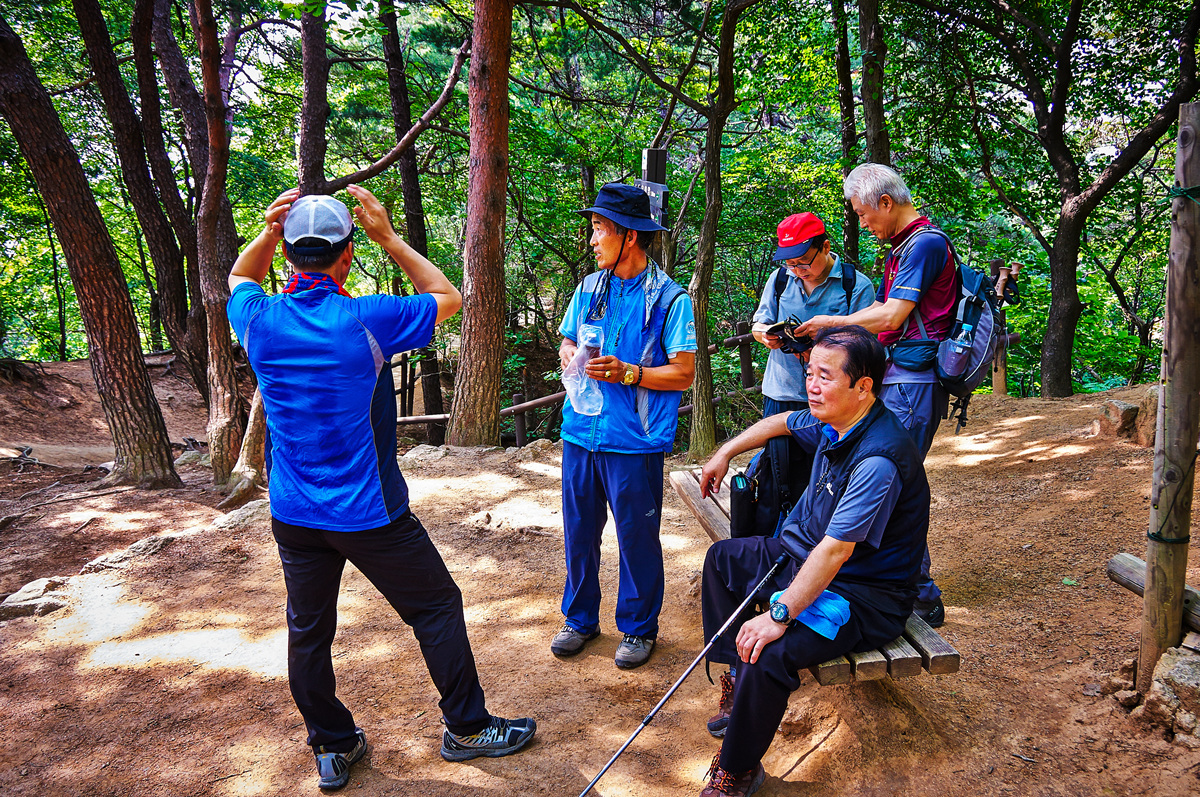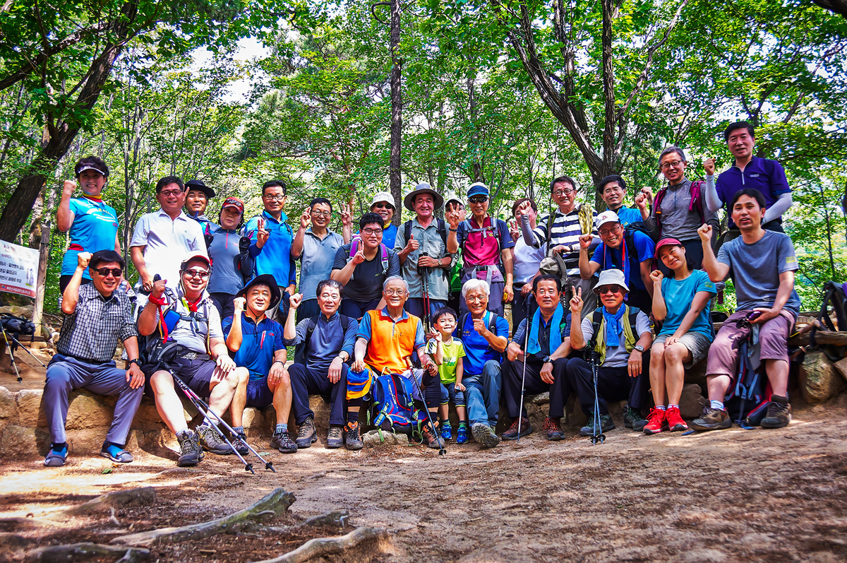 #원통사 입구 휴게터에서 땀도 식히고, 단체사진의 기록도
